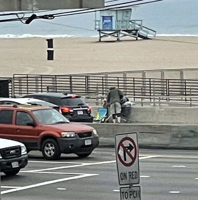 On Tuesday, this guy was trying to set up an encampment ON the PCH Southbound lane at Chatauqua. Cars going 60mph+ were trying to avoid hitting him.