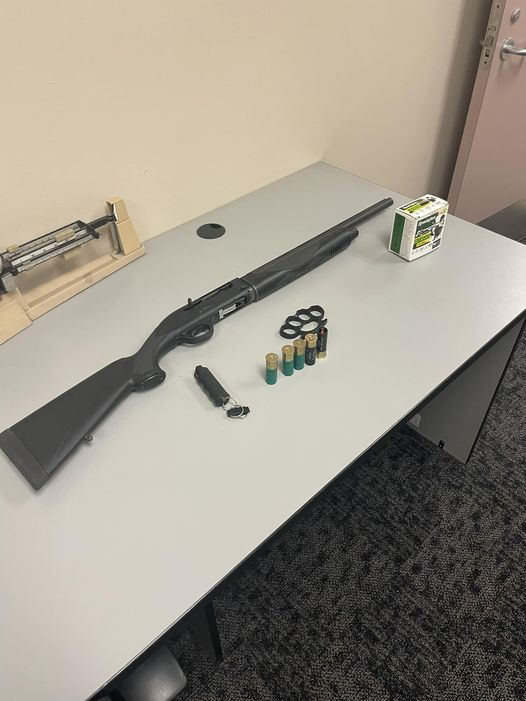 During the investigation, deputies saw in plain view, pepper spray and learned that the suspect is a convicted felon. Also found in the vehicle was brass knuckles, a loaded shotgun with the serial number scratched off, and a box of ammunition. The suspect was #arrested for multiple weapons charges including Possession of a Firearm, Possession of Ammunition, and Obliterate ID Markings on a Firearm.
