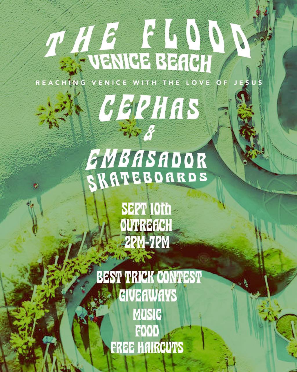 This Saturday! Come out to Venice skatepark with Embassador Skateboards to hang out. Good, music, giveaways, and a best trick contest. Praise Jesus