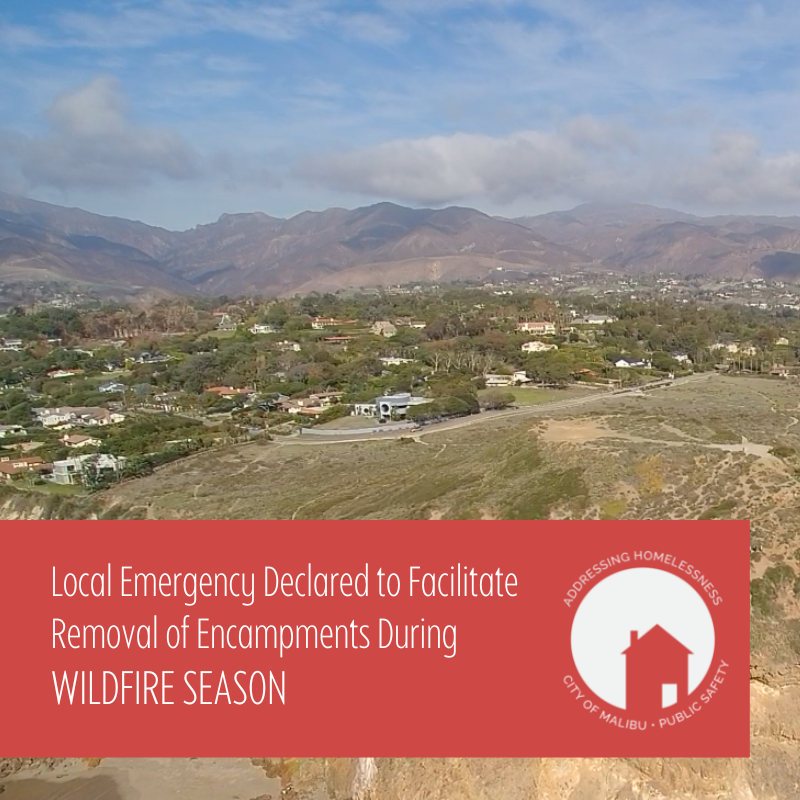 The resolution enables the LA County Sheriff’s Department (LASD), LASD-Homeless Outreach Services Team (HOST) and the City to more quickly remove homeless encampments on public property that are identified as fire threats during wildfire season. As part of wildfire safety efforts, LASD and the City are prioritizing removing homeless encampments and unhoused people from the brush-covered hills and canyons of Malibu and placing them into emergency shelters.