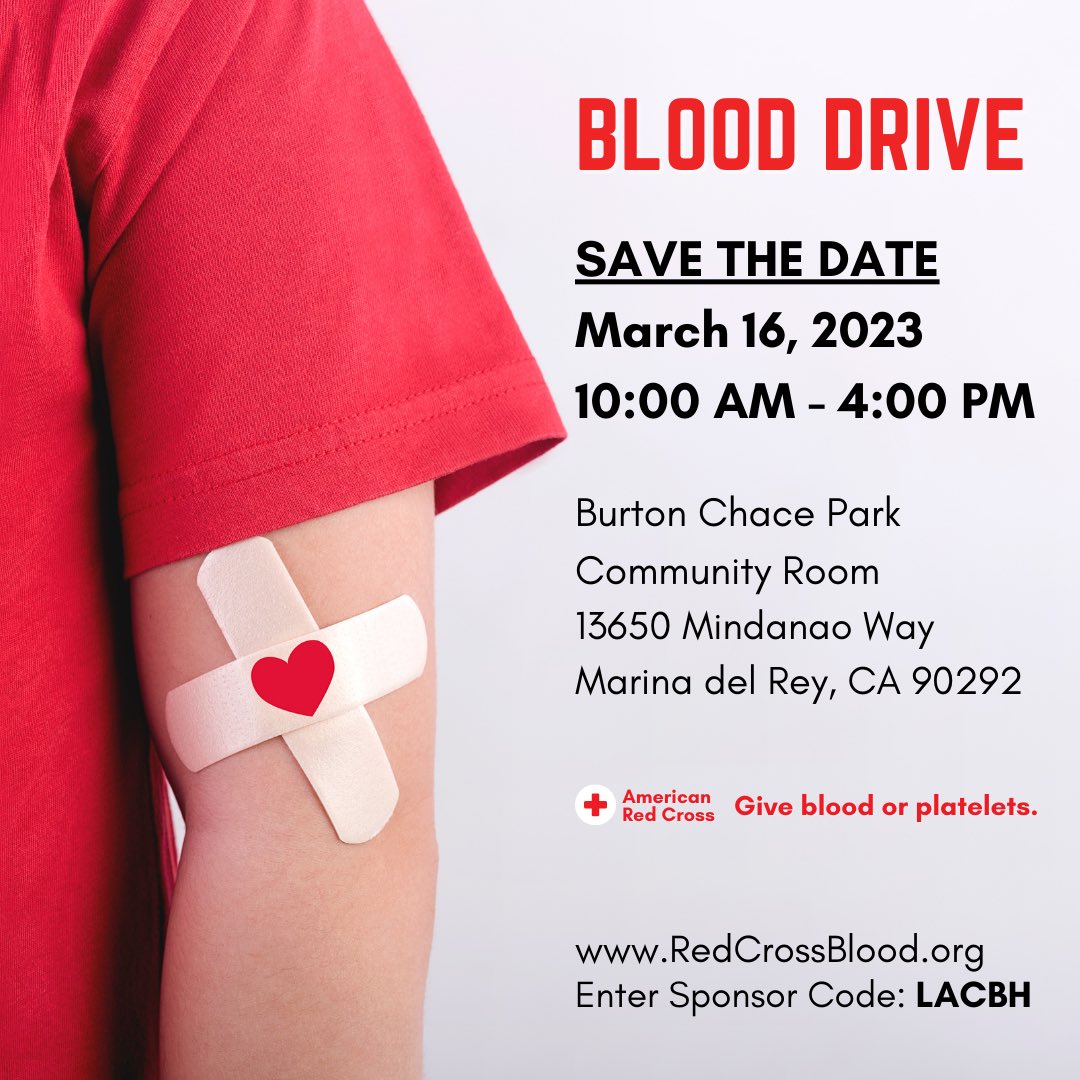 Sign up to donate for our Blood Drive on 3/16, 10AM – 4PM, at Chace Park – Community Room.