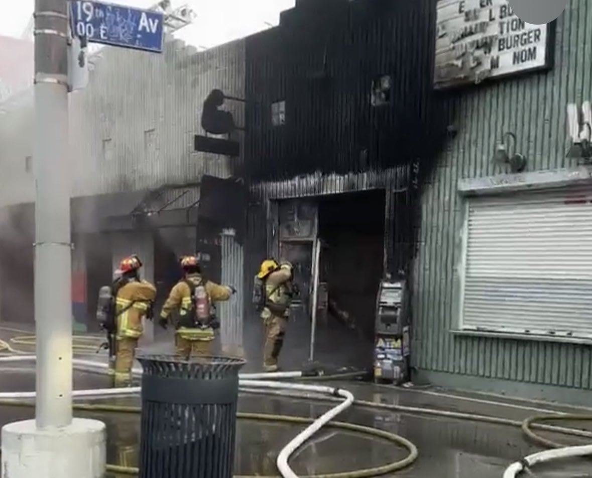 The business owner was in the building and heard a popping sound prior to the fire igniting. Cause of the fire is attributed to lithium-ion battery overheating. The pet dog of the business owner was sadly found deceased in the structure after fire extinguishment.