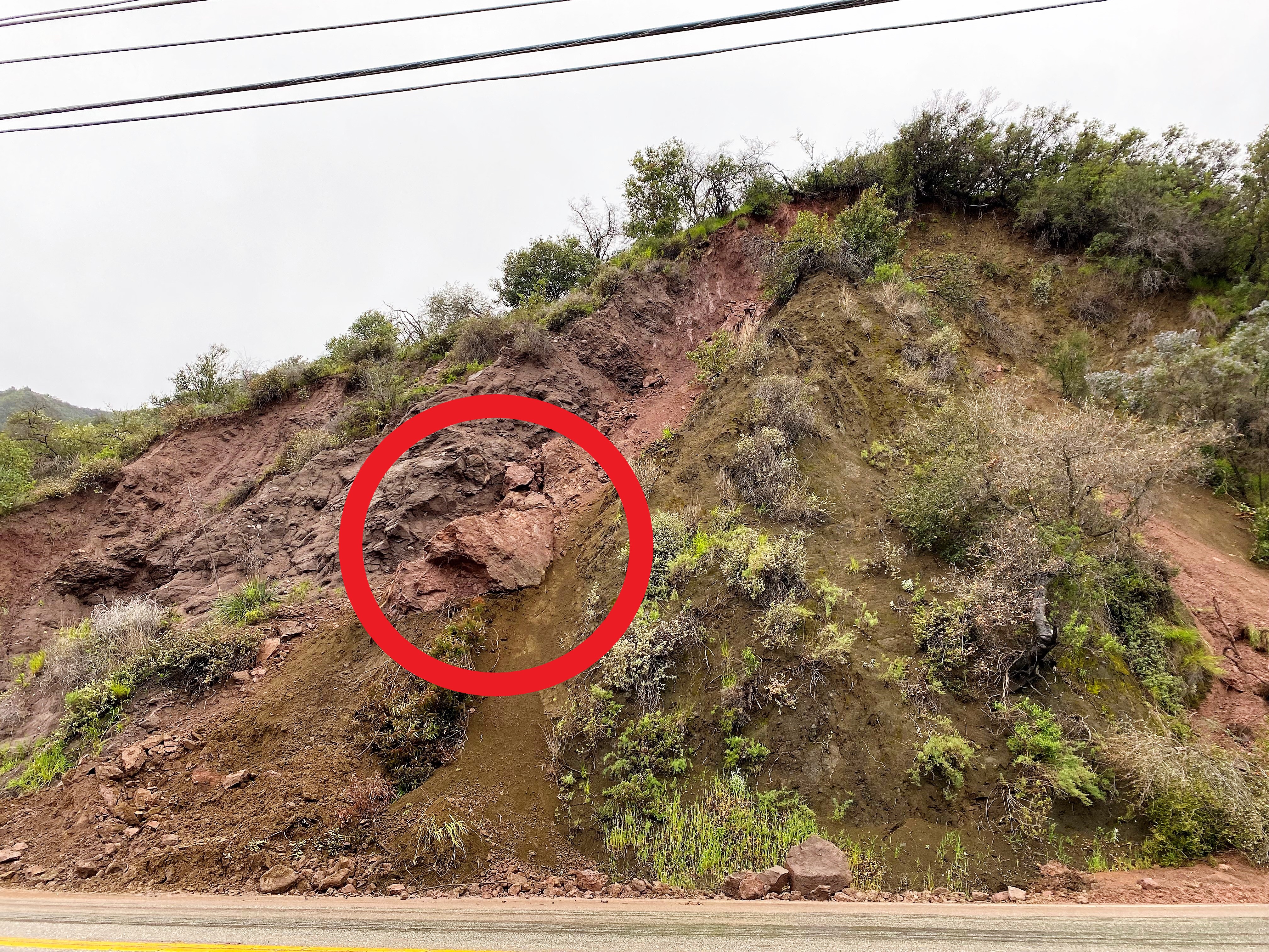 The huge boulder will be brought down and broken into pieces which will be cleared from the roadway. The crew is hopeful of finishing before 6PM but that is a conservative estimate for people to make their travel plans. See artist rendering below:
