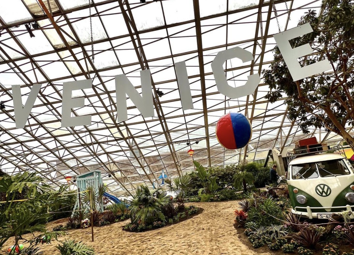 The Foellinger-Freimann Botanical Conservatory in Downtown Fort Wayne, Indiana has over 500 plants in three indoor gardens, including a "California Dreaming" exihibit with Venice Beach as it's theme.