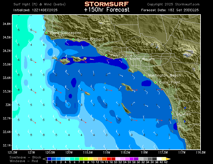 Hurricane Hilary 'Needle Threading' Update - At 11AM Fri (8/18) Hilary continued north-northwest at 15 kts with winds 115 kts (132 mph) producing seas to 49 ft (estimated). All meaningful fetch and seas were now moving into the SCal swell window and were east of the center see purple curved line). The swell window is narrow pushing into Southern California, at only 38 nmiles wide (red line) on the 160 degree track into San Diego (orange line) and 83 nmiles up into Long Beach/Malibu (green line) at its widest. That means there's a little more fetch east of the eye pushing up to Long Beach versus further south. The storm is peaking and is to hold strength thru 11 pm this evening, then fading some on Sat (8/19) while moving north-northwest with the swell window closed shortly thereafter (see black lines). Landfall point has shifted north a little to about 10 miles north of Ensenada at minimal hurricane strength at 65 kts (75 moh) and then over west San Diego at about 6 pm Sunday (8/20). Expect copius rainfall over Southern California.