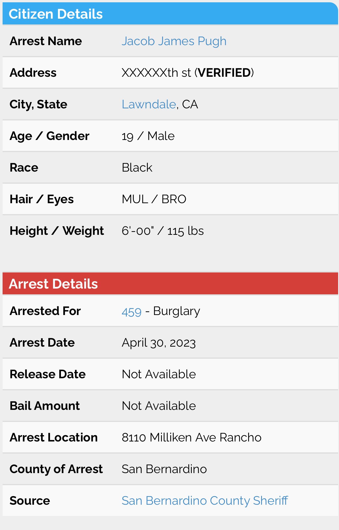 Pugh, Jacob (DOB: 04/28/2004) Homeless.