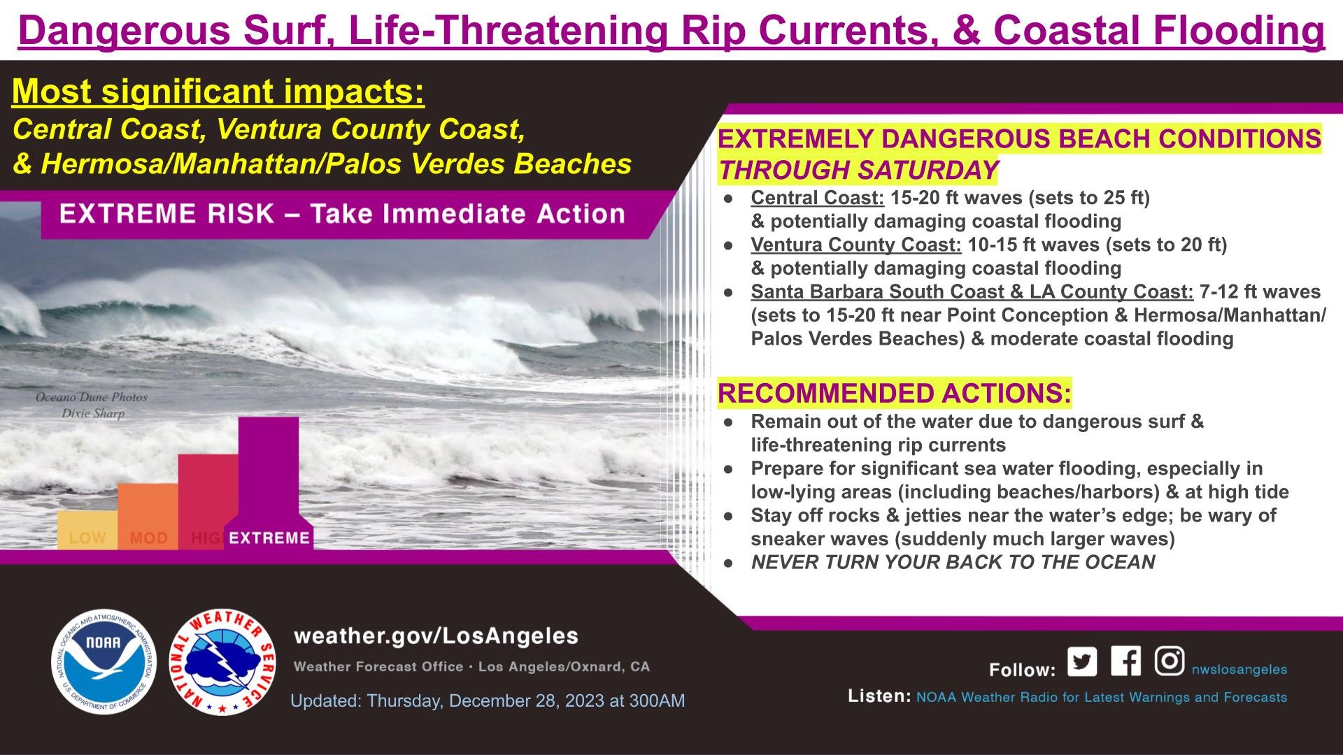 High surf is peaking today, subsiding some tomorrow & increasing again Saturday w/ similar to slightly higher surf & coastal flooding. USE CAUTION at the beach & STAY WELL BACK from the water's edge! There is a high risk of ocean drowning for surfers & beach goers. An approaching storm system will bring rain to the area late tonight with a slight chance of thunderstorms Fri evening through Sat morning. Heavier rain possible near any storm that forms. Rain will be ending late Saturday evening.
