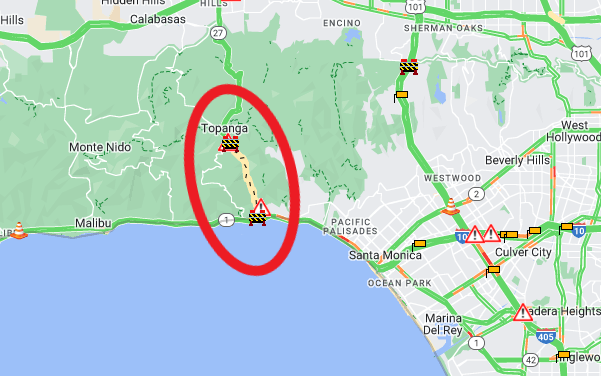 Saturday, March 9, Topanga Canyon Blvd - State Route 27 is *closed* in both directions between Pacific Coast Hwy & Grand View Dr. for slide removal. Duration of closure is unknown.