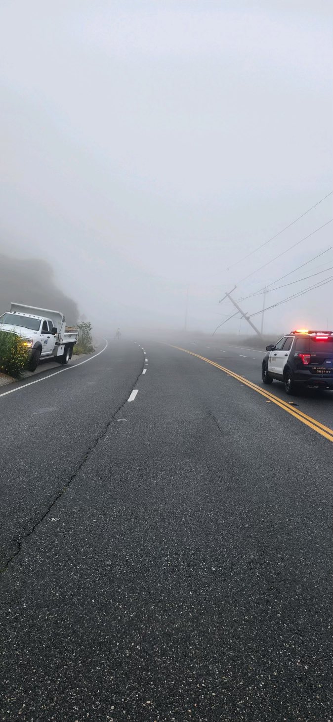 All lanes had to be closed at 5330 Kanan Dume Rd, in Malibu on Wednesday morning. A vehicle went over the side and took out a power pole.