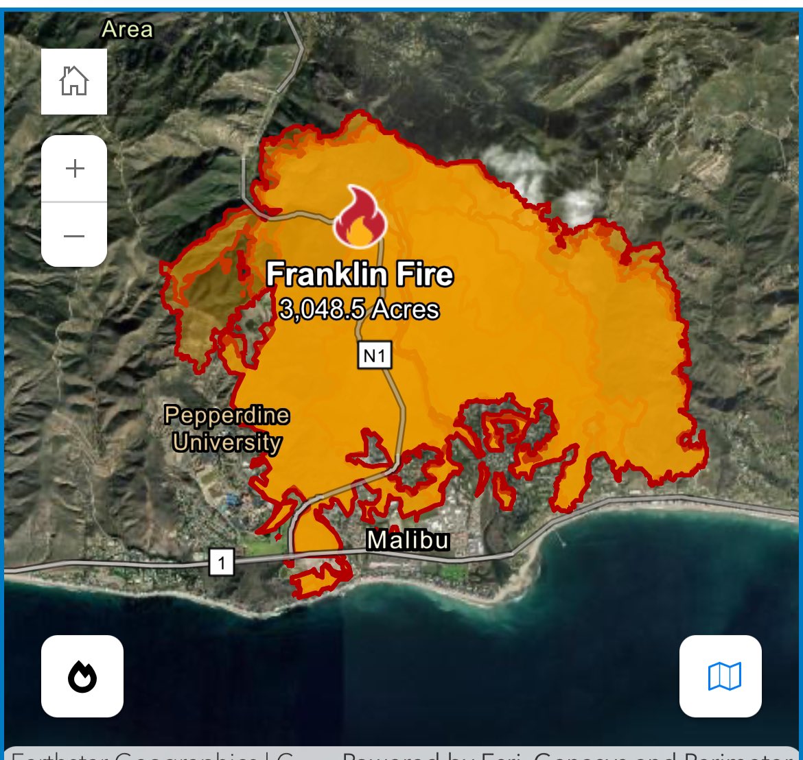 The Franklin Fire has now burned 2,862 acres and remains at 0% containment. Preliminary reports indicate that seven structures have been destroyed, and eight have been damaged. Our thoughts are with all those affected by this devastating event. The City has set up an Emergency Information and Supplies Station at Zuma Beach, offering updates, food, water, first aid assistance