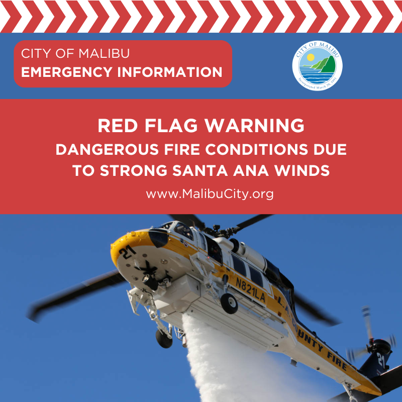 Red Flag Warning in Effect in Malibu Tues 12/17 to Wed 12/18/24