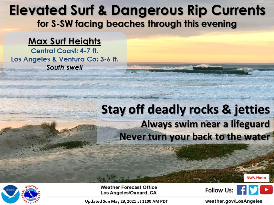 Elevated surf continuing through Sunday evening across S-SW facing beaches in SW California.
