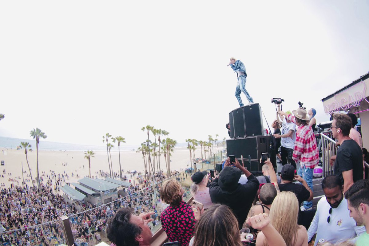 Machine Gun Kelly, along with Travis Barker, threw a "suprise" concert on Saturday afternoon on the Venice Bordwalk.