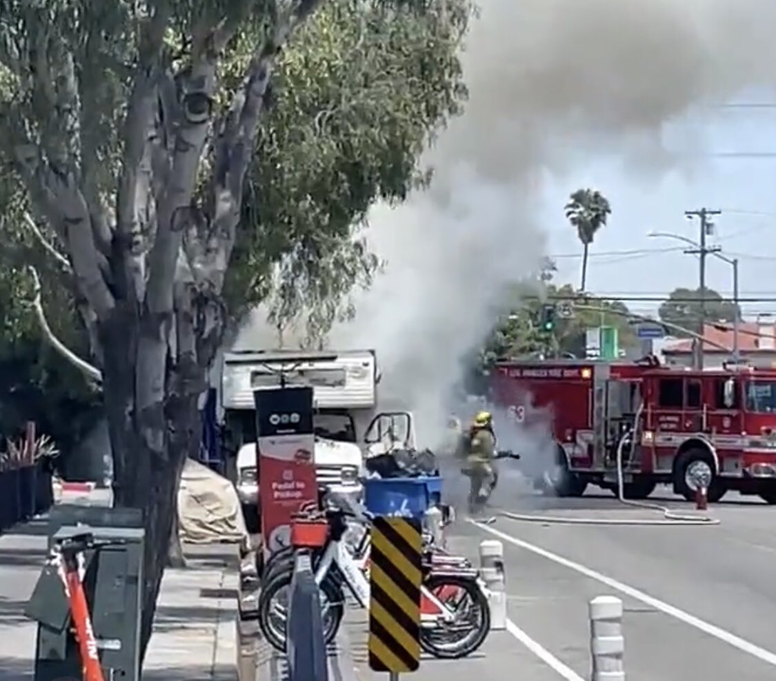 Here's a photo of a RV on fire at Rose and Lincoln in Venice. Photo by