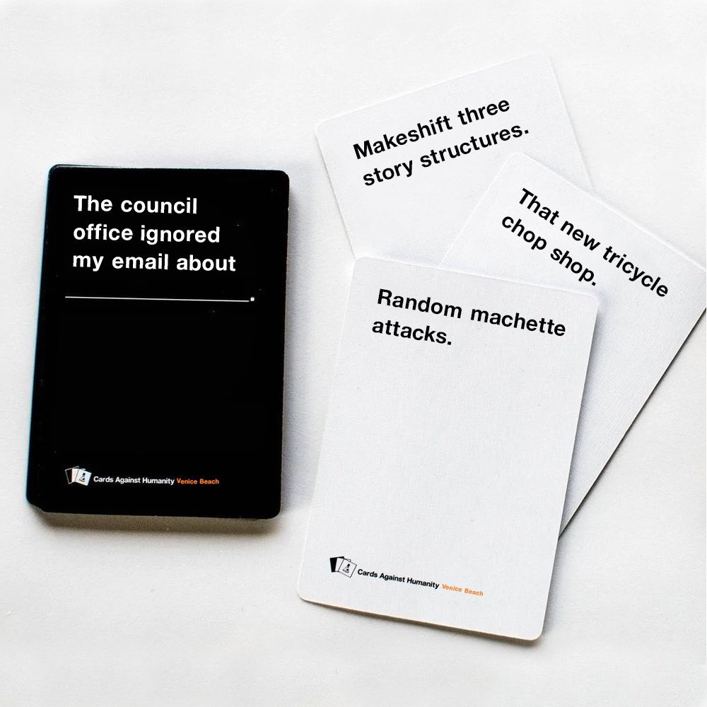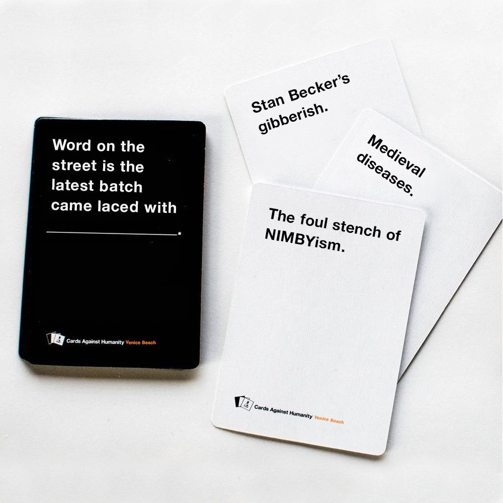 For those that like Cards Against Humanity game,check out the Venice Beach Expansion Pack: