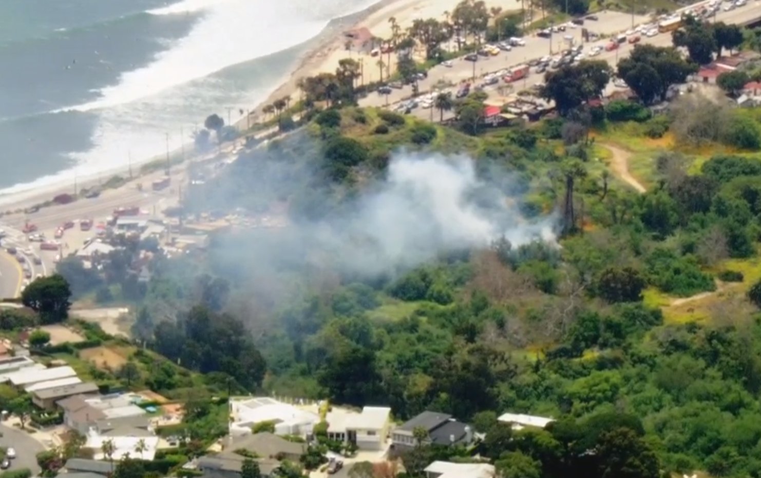 Thursday afternoon, a fire broke out in the hills behind the Malibu Feed Bin at Topanga Beach. Firefighters had in under control and put out right away