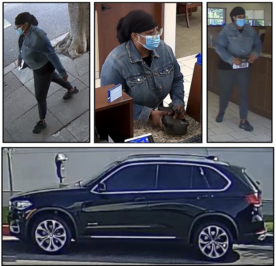 After the robbery, the suspect fled in a black colored BMW X5 SUV.