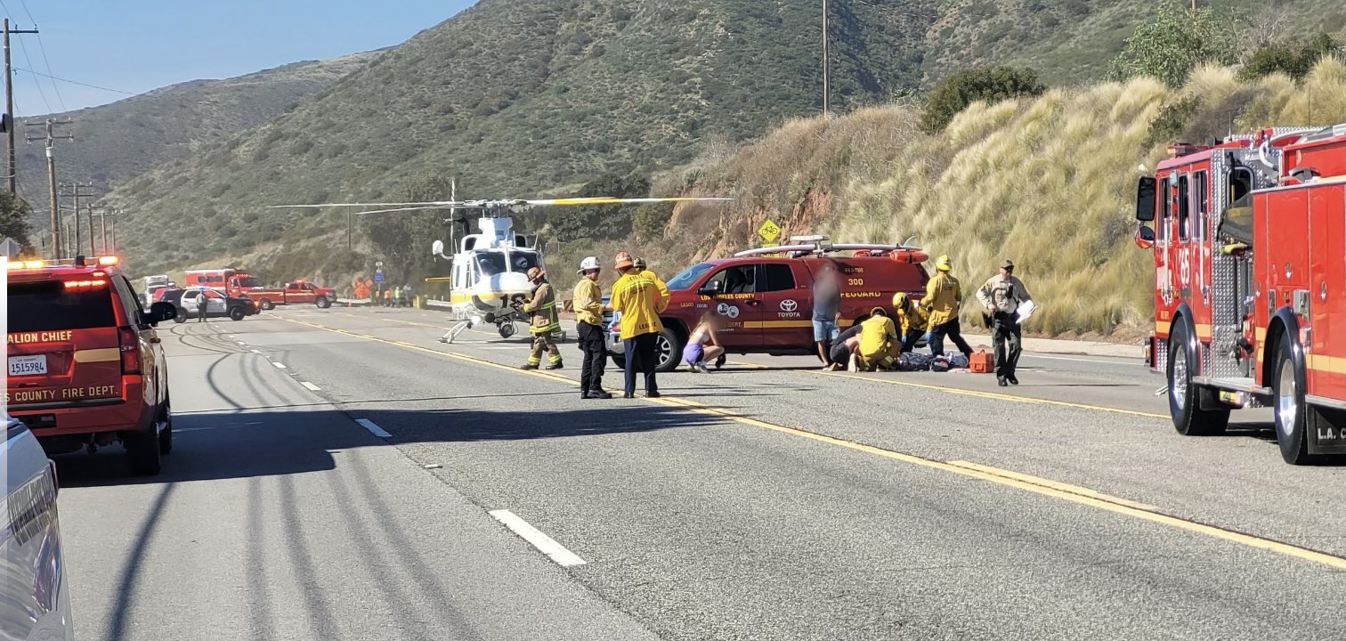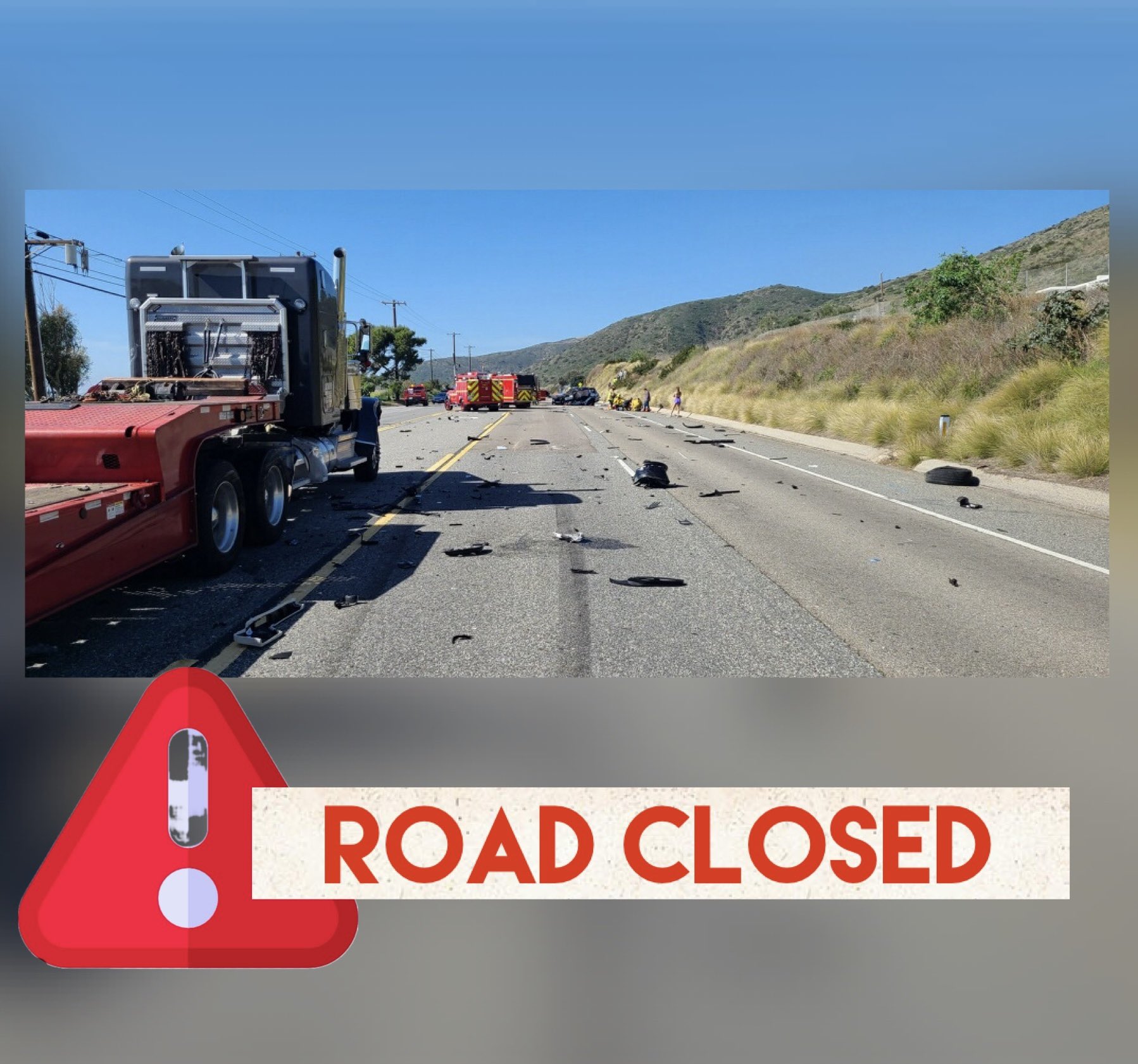 All lanes closed at the 34300 block of Pacific Coast Highway in Malibu due to a 2-vehicle collision. This is at Nicholas Canyon at the western edge of City of Malibu.